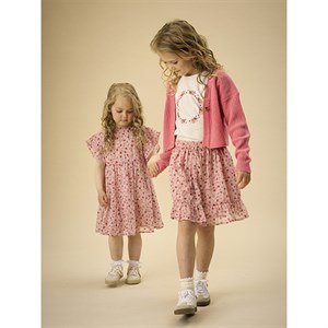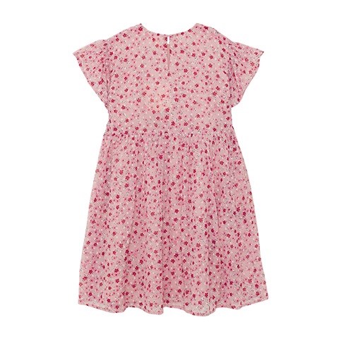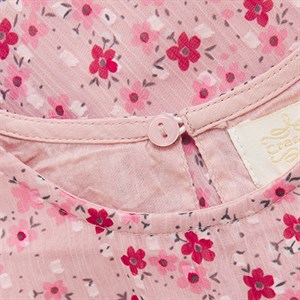 Kjole med fint blomsterprint fra Creamie, lavet i chiffon. Kjolen har korte ærmer og rynker i taljen og på ærmerne.