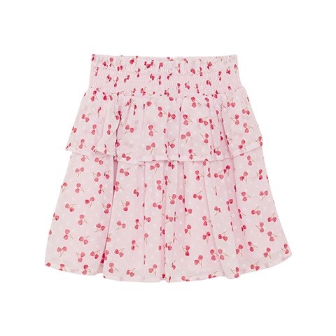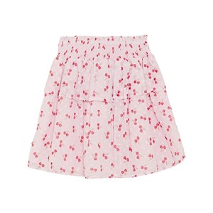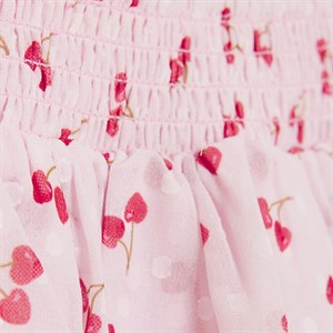 Creamie nederdel i chiffon med kirsebærprint over det hele. Nederdelen har smock-effekt og flæse i taljen.