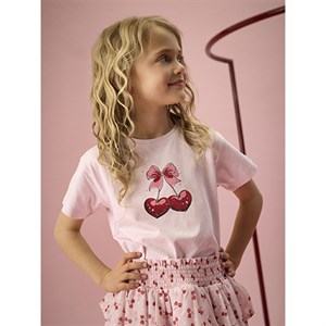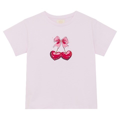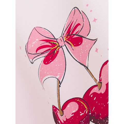 Creamie t-shirt med sløjfe- og kirsebærprint på brystet. Denne t-shirt har korte ærmer og et oversized look. Certificeret i henhold til GOTS - økologisk CERES-0366