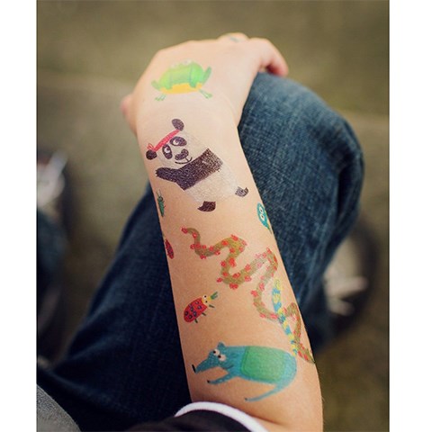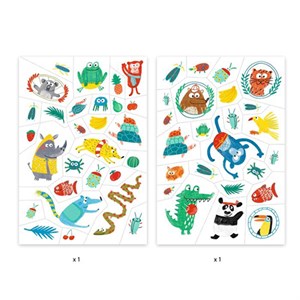 Søde og sjove tatoveringer med vilde dyr. Hele 2 ark med masser af skønne tatoveringer. Tatoveringerne er dermatologisk testede.
