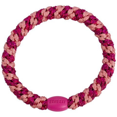 KKNEKKI - Hårelastik, Stripe Faded Rose Electric Pink Glitter