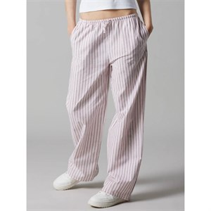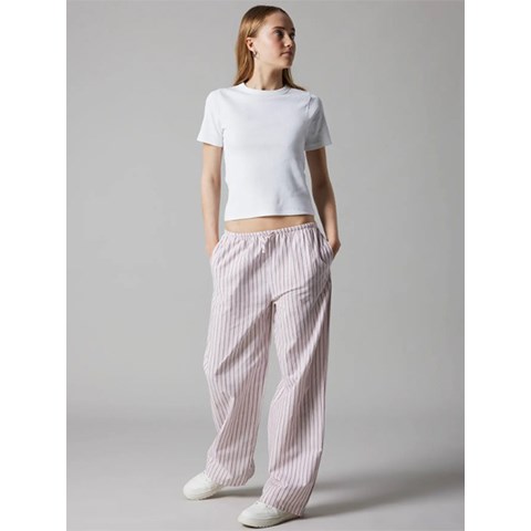 LMTD - Kelle Poplin Wide Pants, Pink Marshmallow Stribes/ Black Coffee