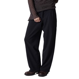 Bløde bukser med vide ben. Bukserne har justerbar talje samt knap- og lynlåslukning.