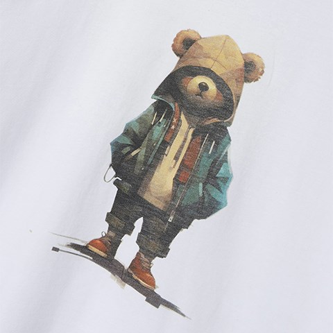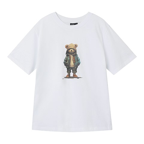 Kortærmet t-shirt med cool print på forsiden. T-shirten er fremstillet i jersey, som er et let og strækbart stof med en blød overflade og inderside, så den er behagelig at have på og giver god bevægelsesfrihed. Løs pasform.
