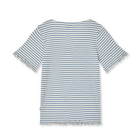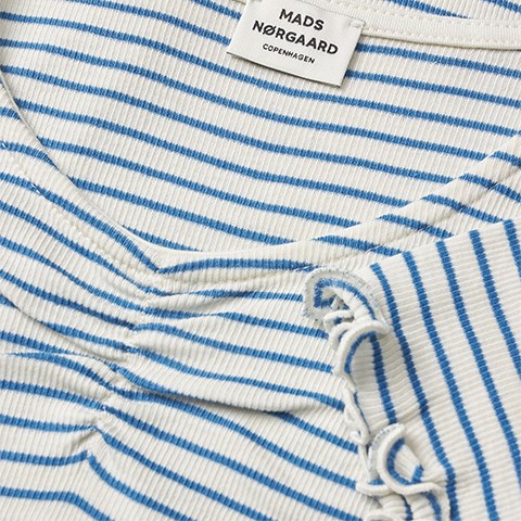 Mads Nørgaard - 2x2 Cotton Stripe Tiki Tee, Vanilla Ice/Bright Cobolt