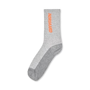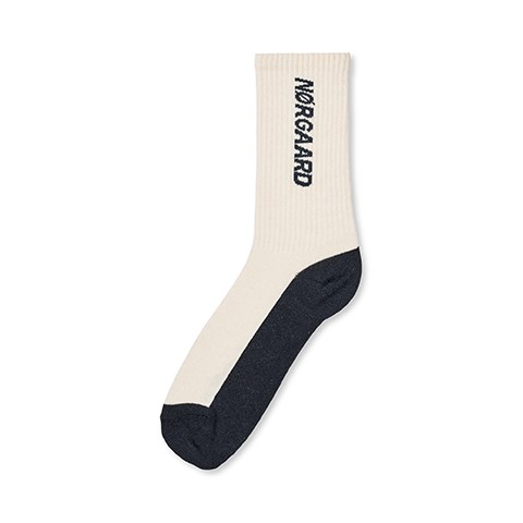 Sock Box Logo fra Mads Nørgaard indeholder 4 par forskellig farvede ribstrikkede strømper med  "Nørgaard" logo i kontrastfarve ned langs siden. Strømperne er i onesize, passer ca. str. 37-42.