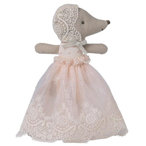 Maileg - Baby Mus I Dåbskjole, Rosa