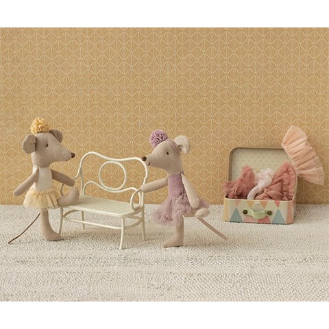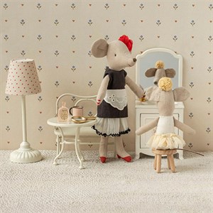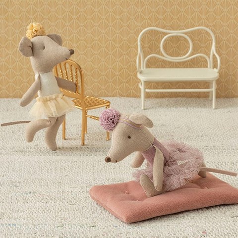 I en stille krog af det poetiske univers fra Maileg står en lille ballerina klar. Lillesøstermusen er klædt i sit fineste skørt og et delikat pandebånd – klar til at lade fantasien føre hende gennem elegante trin og yndefulde piruetter.
