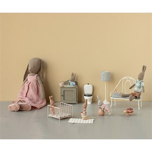 Lad babyen lege sikkert i en sød kravlegård. Denne passer perfekt til kaniner og harer i størrelse My. Kravlegården er i metal og malet i en dejlig lyserød farve. I bunden er en blød madras betrukket med unikt Maileg stof.