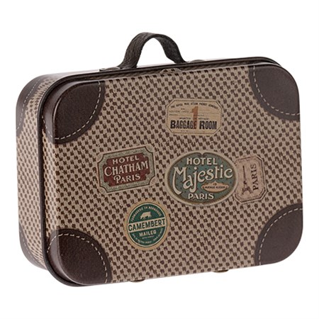 Lille metalkuffert med farverige illustrationer og smukke detaljer, som kan bruges til enhver lejlighed: små gaver, pengegaver, opbevaring af små genstande eller for mus og små kaniner til at tage deres ejendele med på farten.