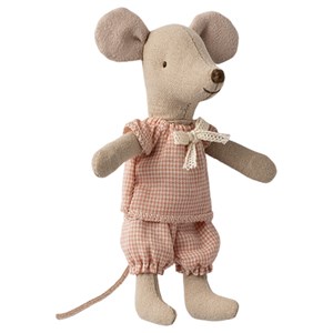 Den søde Lillesøster Mus er klar til timevis af leg og sover godt og trygt i den lille tændstikæske. Tøjet og sengetøjet er lavet af de blødeste stof med unikke print i smukke farver. Musen har magneter i hænderne.