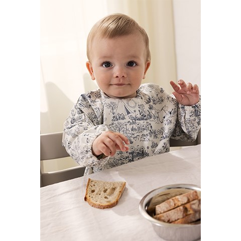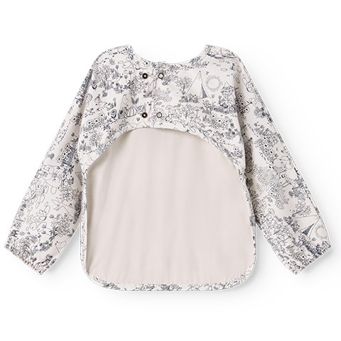 Det praktiske Apron LS spiseforklæde fra MarMar Copenhagen kombinerer funktionalitet med et charmerende design. Forklædet har lange ærmer med elastik ved håndleddene, en praktisk lomme foran og lukkes nemt med trykknapper i nakken.