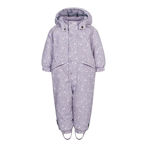 Dejlig varm flyverdragt med et behagelig pasform fra MarMar. Snefang på buksebenene, aftagelig hætte og to lommer foran samt tapede sømme.