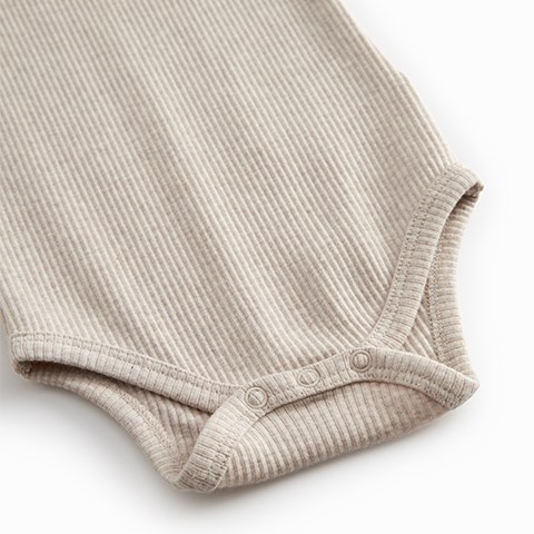 Trykknapper mellem benene gør påklædning og bleskift nemt og praktisk, hvilket gør denne body til et funktionelt basisprodukt i babygarderoben. Den neutrale Light Beige Melange farve giver et klassisk og elegant udtryk, som passer til alle outfits.