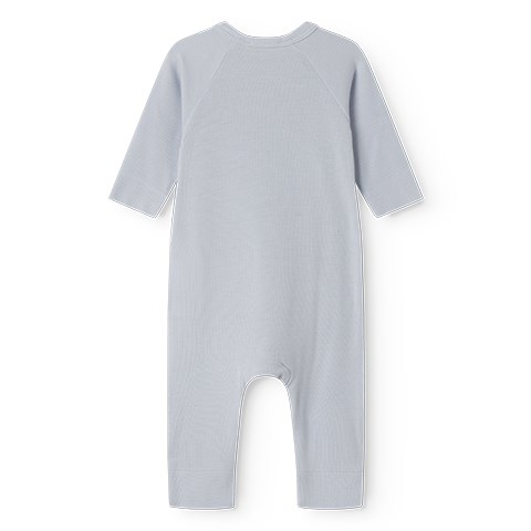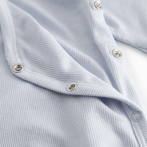 Slå-om-lukningen med trykknapper fra halsen og ned langs det ene ben gør det nemt at tage dragten af og på, og gør bleskift hurtigt og praktisk. Den åndbare kvalitet sikrer høj komfort hele dagen, og designet med fødder holder små fødder varme og beskyttede.
