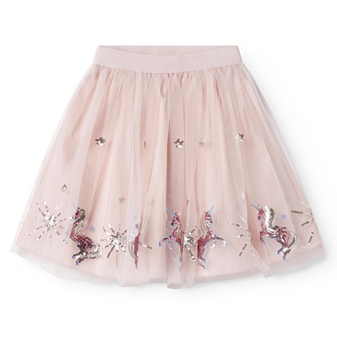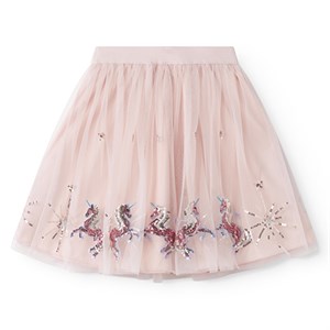 MarMar Solvig Ballerina Embroidery Skirt i Unicorn Twinkle er en eventyrlig tyl lyserød nederdel, der emmer af magi og leg. Nederdelen er dekoreret med smukt enhjørning broderi og fine pailletter, som giver et glitrende og fantasifuldt udtryk – perfekt til små drømmere.