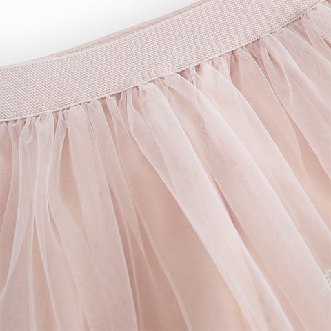 Det lette tylmateriale skaber en flot volumen og et klassisk ballerina-look, mens den bløde bomuldsforing sikrer høj komfort mod huden. Den elastiske talje gør nederdelen nem at tage på og behagelig at have på hele dagen.