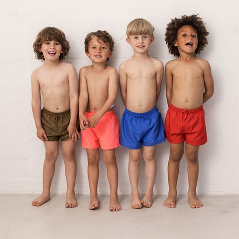 Flotte neonfarvede badeshorts med elastik og snøre i livet.