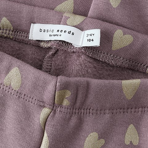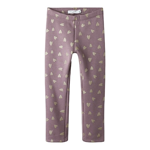 Name It -Tavina Sweat Fleece Leggings BRU Noos, Grape Shake w. Glitter Hearts