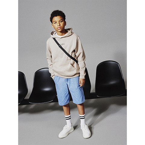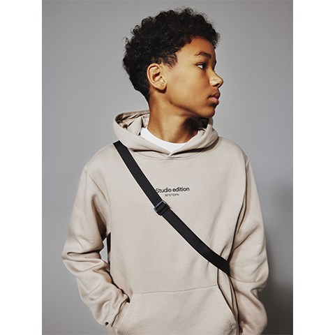 Cool hættetrøje med kængurulomme og print på forsiden. Hættetrøjen er lavet i børstet sweat stof, så den har en superblød inderside. Normal pasform.