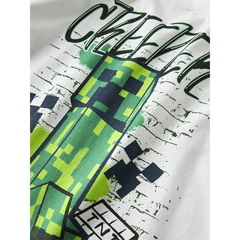 Kortærmet t-shirt i økologisk bomuld med cool Creeper fra Minecraft print på forsiden. T-shirten er fremstillet i jersey, som er et let og strækbart stof med en blød overflade og inderside, så den er behagelig at have på og giver god bevægelsesfrihed. Normal pasform.
