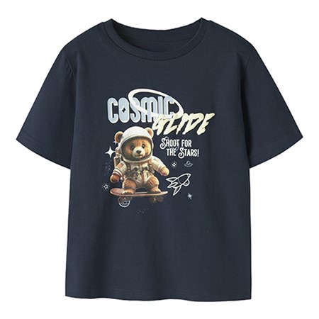 Kortærmet t-shirt med fint fototryk af rum-bamse. T-shirten har skumtryk for en puffy effekt og et tredimensionelt look og fototryk for et realistisk og detaljeret tryk. T-shirten er fremstillet af jersey, som er et let og strækbart stof med en blød overflade og inderside, så den er behagelig at have på og giver god bevægelsesfrihed. Normal pasform.