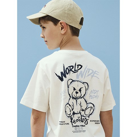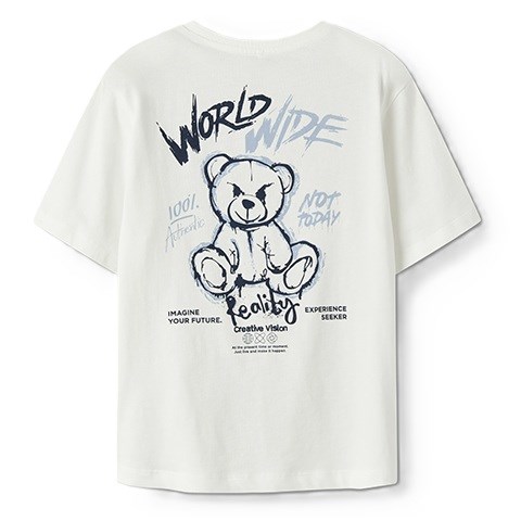 Kortærmet t-shirt i økologisk bomuld med print på for- og bagside. T-shirten er fremstillet i jersey, som er et let og strækbart stof med en blød overflade og inderside, så den er behagelig at have på og giver god bevægelsesfrihed. Normal pasform.