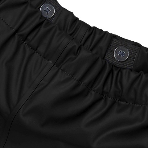 Regnbukser med svejsede sømme for komplet vandtæt beskyttelse. Justerbare benåbninger, justerbar og elastisk talje samt dekorative refleksdetaljer. Aftagelige og justerbare elastiske stropper for en behagelig pasform omkring foden. Elastiske kanter.