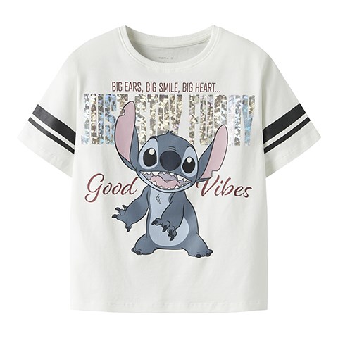 Kortærmet t-shirt med Stitch og folie print på forsiden. T-shirten er lavet i jersey, som er et let og strækbart stof med en blød overflade og inderside, så den er behagelig at have på og giver god bevægelsesfrihed. Normal pasform.