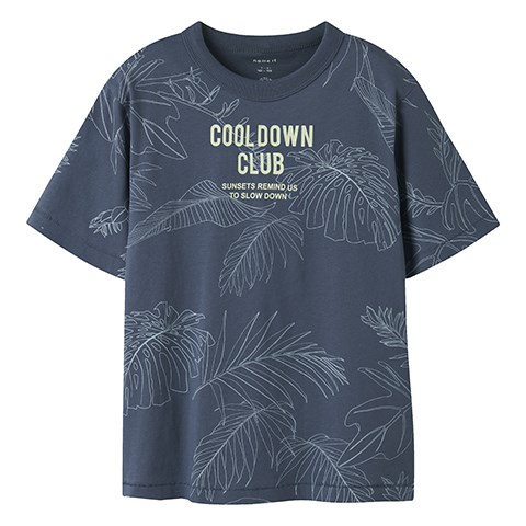 Kortærmet t-shirt med AOP palmeprint og Cool Down Club printet på forsiden. T-shirten er fremstillet i jersey, som er et let og strækbart stof med en blød overflade og et inderside, så den er behagelig at have på og giver god bevægelsesfrihed. Normal pasform.