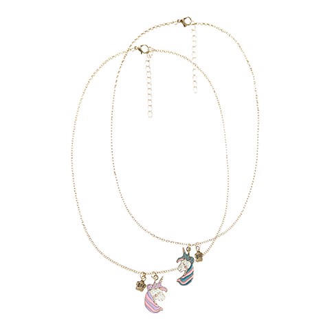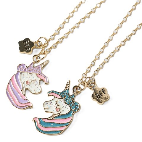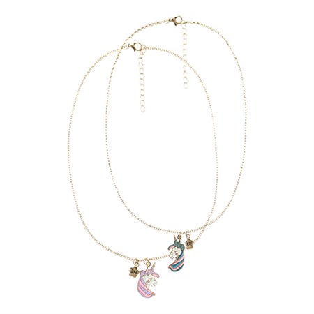 To gyldne Best Friends Forever (BFF) halskæder med enhjørninge vedhæng. Halskæderne kan juesteres i længden.