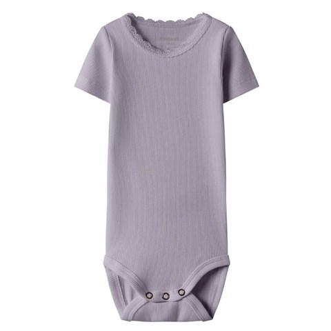 Fin kortærmet body i blød bomulds- og modalkvalitet. Bodyen har sød blonde ved halsudskæringen.
