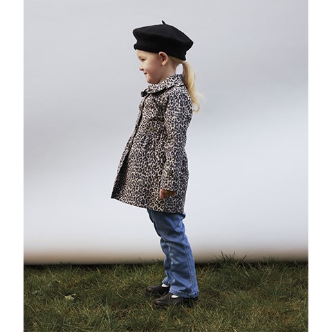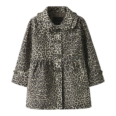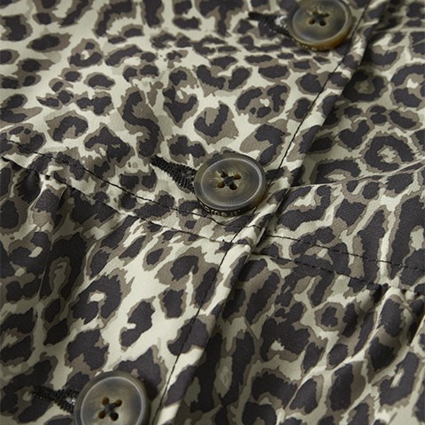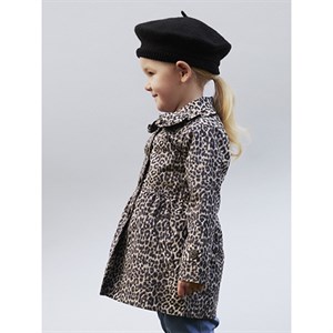 Den fineste jakke med leo print til mini pigen. Jakken har sidelommer, flæse detalje på kraven og knaplukning foran.