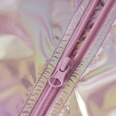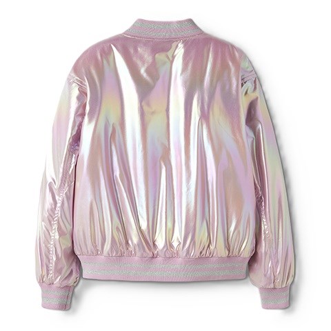 Cool bomber jakke med folieprint, så den har et skinnende look. Jakken har forlommer med trykknapper samt lynlåslukning. Den har elastiske manchetter og elastisk kant forneden.