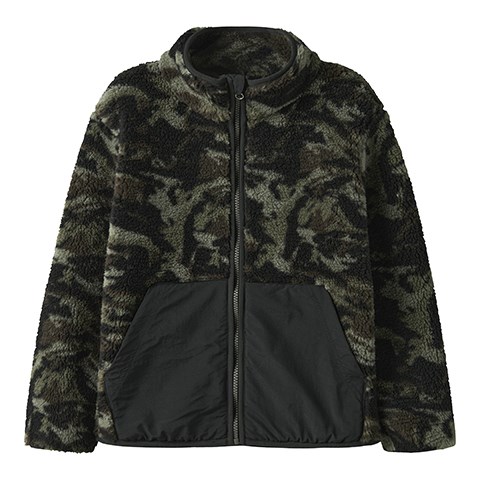 Lækker teddyjakke med camouflage print. Jakken har høj hals, lynlås med hagebeskytter samt forlommer.