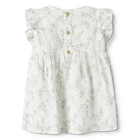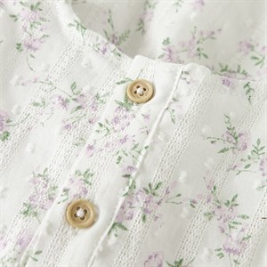 Designet har en rund hals og korte cap-ærmer, og den lukkes med en praktisk knaplukning, der gør påklædning nem og sikker. Kjolen har et all-over blomster print, som giver et sødt og harmonisk udtryk. Regular fit sikrer en komfortabel pasform, der giver barnet frihed til at bevæge sig.