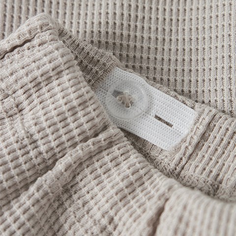 Shortsene er fremstillet i jacquardstrik, som giver et detaljeret mønster og en let struktureret overflade. Materialet er 100% økologisk bomuld, hvilket sikrer blødhed, holdbarhed og komfort hele dagen.