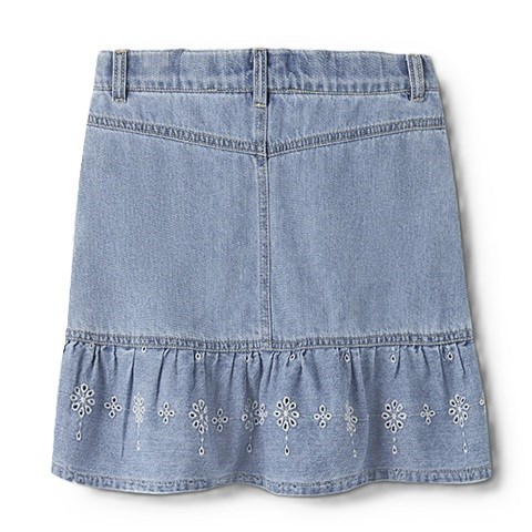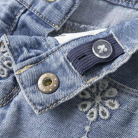 De smukke broderie anglaise detaljer giver nederdelen et let og sommerligt look, som skiller sig ud fra klassisk denim. Samtidig sikrer den justerbare talje en god pasform, der nemt kan tilpasses barnet.