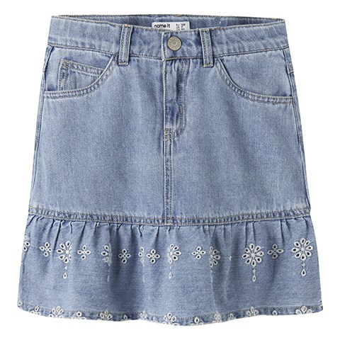 Name It NKF Hallie DNM Anglaise Skirt – Light Blue Denim nederdel til piger.
