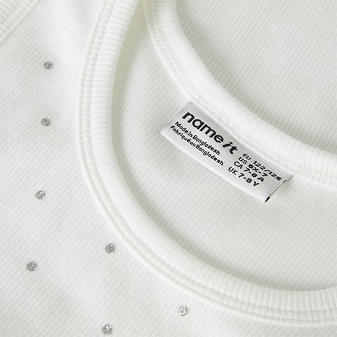 Det enkle design med rund hals og smalle stropper får et ekstra løft med et flot glitter print, som tilfører et funklende og trendy touch. Perfekt til børn, der ønsker et stilfuldt look med lidt ekstra kant.