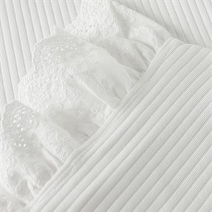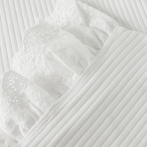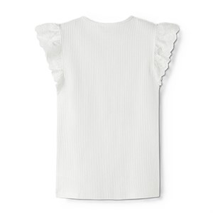 Designet har rund hals og korte cap sleeves, som giver et let og sommerligt udtryk. De fine flæsedetaljer og vævede elementer tilfører et ekstra feminint og elegant touch, der gør toppen lidt mere særlig end en klassisk basis T-shirt.