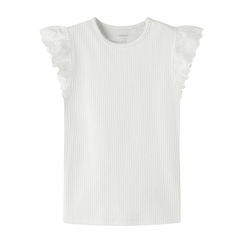 Opdater garderoben med denne fine og feminine Name It Havelle top i klassisk Bright White. En alsidig top, der passer perfekt til både hverdag og lidt pænere anledninger.