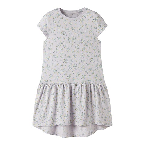 Opdater garderoben med denne fine og sommerlige Name It Vigga kjole i Lavender Fog med et sødt Little Flower all-over print. En alsidig kjole, der passer perfekt til både hverdag, skole og hyggelige stunder.