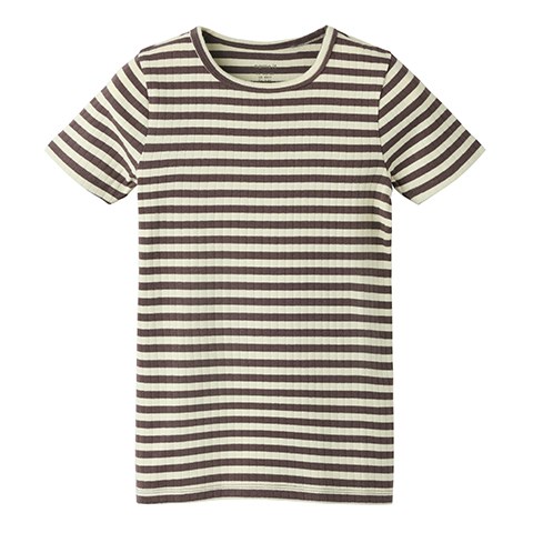 T-shirten er fremstillet i blød ribstrik af økologisk bomuld med stretch, som giver en tætsiddende og komfortabel pasform. Den elastiske kvalitet følger kroppens bevægelser og sikrer optimal komfort hele dagen.