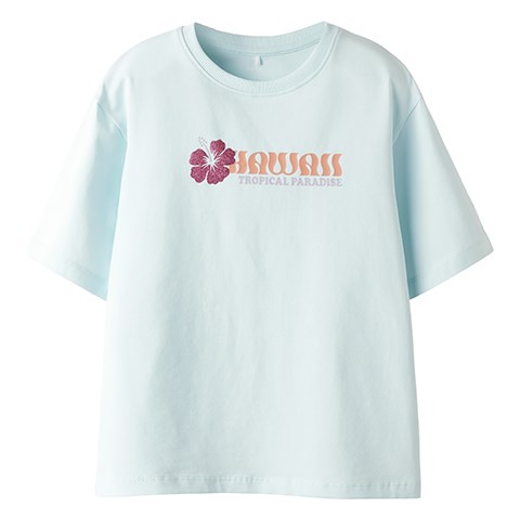 Name It – NKF Janey SS NREG Top – Delicate Blue 🌺 Sommerlig T-shirt med Hawaii vibes!