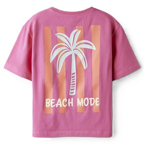 Denne T-shirt fra Name It har et cool og sommerligt look med palmeprint både foran og bagpå samt teksten “Beach Mode” på ryggen. Perfekt til piger, der elsker sol, ferie og afslappet stil.