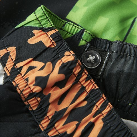 Designet har en mid waist pasform med elastisk talje og justerbar snøre, så badebukserne sidder behageligt og sikkert under leg og svømning. Det all-over print med Minecraft-tema giver et sjovt og genkendeligt look, som mange børn vil elske.