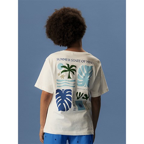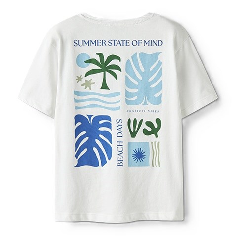 Den er fremstillet i blød og let jersey af 100% økologisk bomuld, som føles behagelig mod huden og giver god bevægelsesfrihed. Pigmentprintet på for- og bagside har en blød finish, der gør T-shirten ekstra komfortabel at have på.