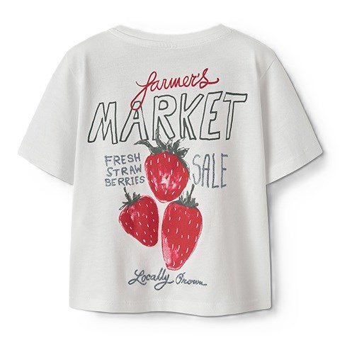Det fine jordbærprint på både for- og bagside kombinerer pigmentprintets bløde finish med et diskret glimmerprint, der tilfører et ekstra funklende og moderne udtryk. T-shirten er fremstillet i blød og let jersey, som føles behagelig mod huden og giver god bevægelsesfrihed hele dagen. Perfekt til både hverdag og festlige lejligheder.
