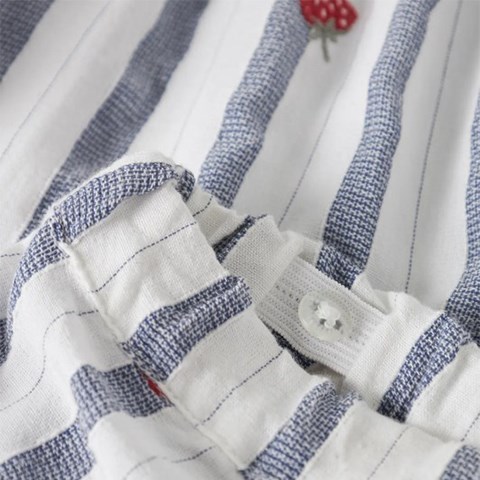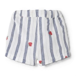 Disse skønne shorts fra Name It er skabt til solrige dage fyldt med leg og bevægelse. De fine all-over striber kombineret med broderede jordbær giver et friskt og legende look, som hurtigt bliver et hit i garderoben.